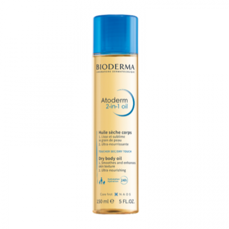 Atoderm óleo 2-em-1 é um óleo seco corporal com dupla eficácia para uma pele lisa e aveludada. As Ceramidas e os Ómegas 3,6 e 9 aumentam a nutrição e a hidratação da pele. O Éster de Ácido Málico alisa e afina o grão da pele. Previne estrias. Atoderm Oléo 2-em-1 tem um toque seco e garante à pele 24 horas de hidratação. Não mancha a roupa e tem uma fragrância suave. 97% nutrição duradoura (1);95% pele mais lisa (1).