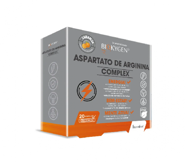 Aspartato de Arginina Complex é um suplemento alimentar no formato de ampolas, produzido especificamente para contribuir para a produção normal de energia através de um conjunto de vitaminas presente (B1, B2, B3, B5, B6, B12).