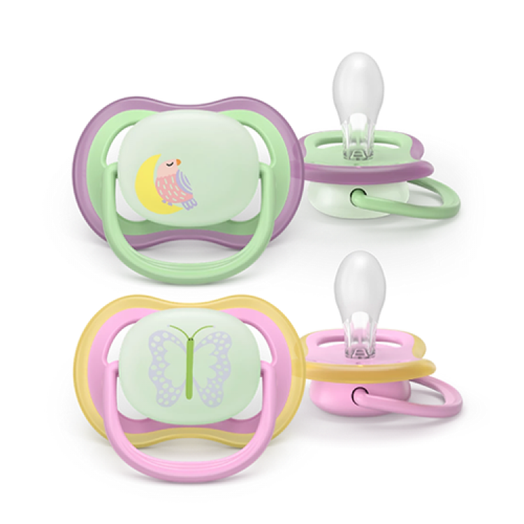 Calmante e respirável com orifícios amplos. 9 em cada 10 pais concordam: as chupetas Philips Avent Ultra Air são confortáveis para o meu bebé. Além disso, brilham no escuro, por isso, o conforto e o alívio são sempre fáceis de encontrar. Agora com materiais 80% à base de plantas.