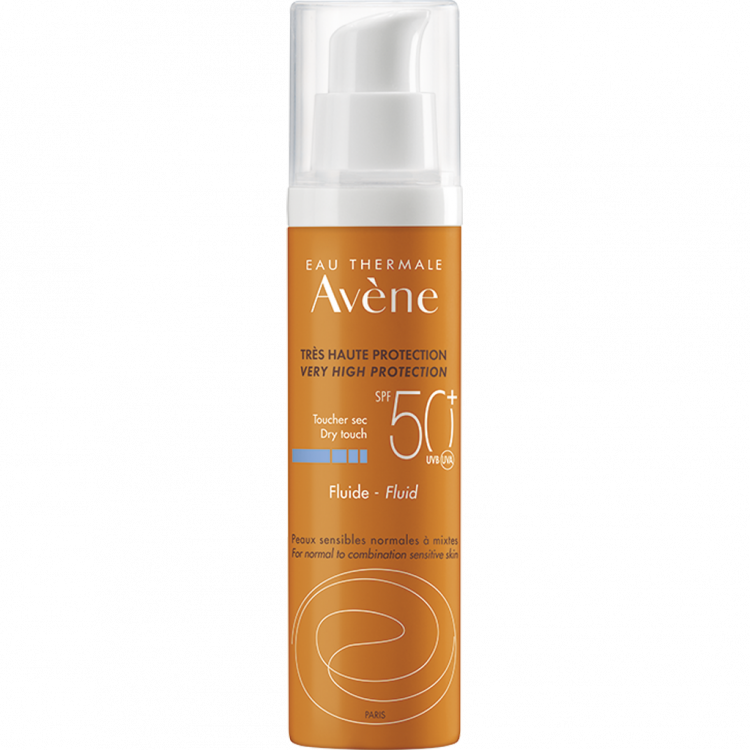 Proteção solar muio alta para a pele sensível, normal a mista, do rosto. Toque seco. Resistente à água. Sem silicones. Proteção UVB-UVA de grande alcance. Fotoestável. Versão sem perfume disponível.