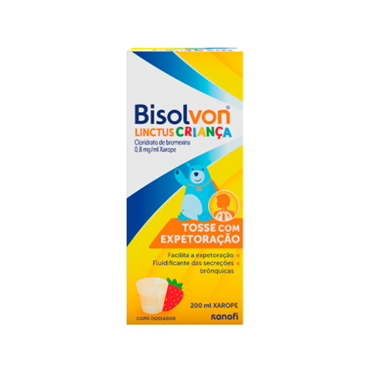 Bisolvon Linctus Criança, Xarope para crianças é usado na tosse com expetoração ou produtiva, em que as vias respiratórias estão congestionadas com muco difícil de expelir. Às vezes pode ouvir um som tipo “pieira” quando o seu filho respira ou tosse. Especialmente formulado para as crianças, Bisolvon Linctus Criança tem um sabor agradável a morango. Está indicado como adjuvante mucolítico do tratamento antibacteriano das infeções respiratórias em presença de hipersecreção brônquica. Bisolvon Linctus Criança reduz a viscosidade das secreções brônquicas. O muco torna-se mais fluido. Bisolvon Linctus Criança tem um efeito estimulador sobre a mucosa brônquica para produzir secreções brônquicas mais fluidas. Além disso, fica facilitada a drenagem do material tensioativo dos alvéolos pulmonares e dos brônquios. Juntamente com a ativação do epitélio ciliar da mucosa brônquica, estes mecanismos mantêm e melhoram a capacidade de autopurificação das vias aéreas. Facilita e acelera a eliminação do muco dos alvéolos pulmonares com a sua ação fluidificante e expetorante.