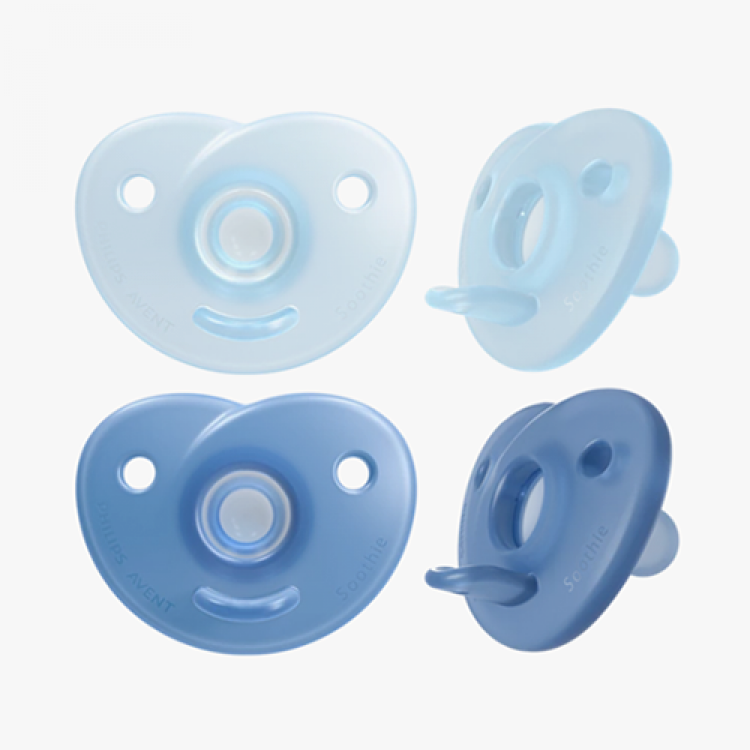 Suaves e flexíveis, as chupetas Soothie da Philips Avent foram desenvolvidas para ajudar a estimular o movimento de sucção do bebé. Design de peça única, em silicone de grau médico com uma caixa reutilizável fabricada a partir de 90% de materiais de origem vegetal.