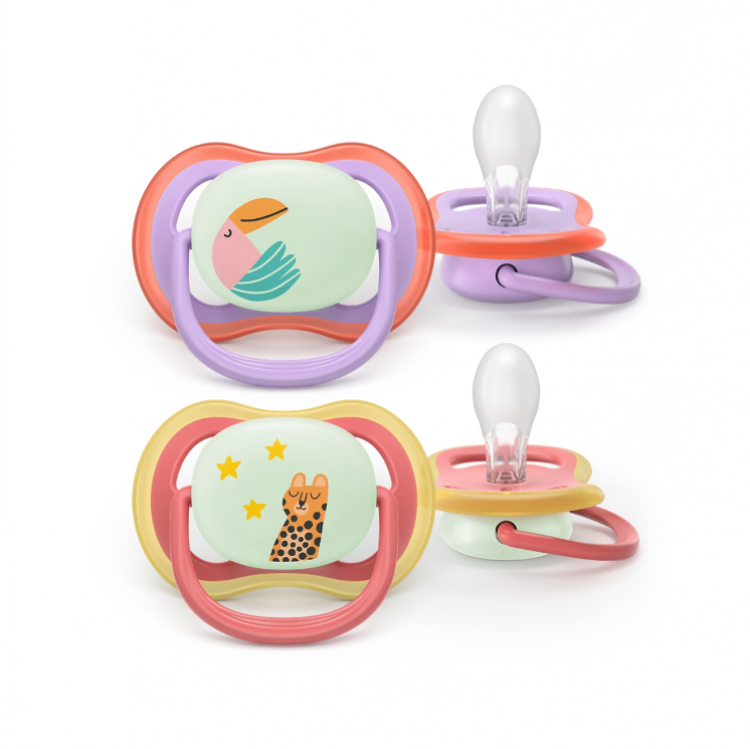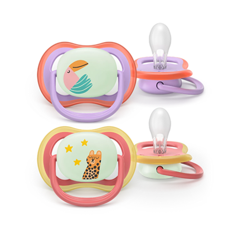 Calmante e respirável com orifícios amplos. 9 em cada 10 pais concordam: as chupetas Philips Avent Ultra Air são confortáveis para o meu bebé. Além disso, brilham no escuro, por isso, o conforto e o alívio são sempre fáceis de encontrar. Agora com materiais 80% à base de plantas.
