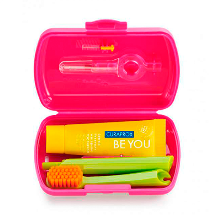 Sem compromisso de estilo. Sem concessões na saúde oral. Os teus produtos Curaprox preferidos na tua mala, na tua bagagem de mão - ou no teu bolso. Este vibrante e elegante kit de viagem mede apenas 9,5 cm x 6 cm.