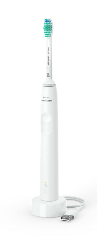 A tecnologia sónica aliada à ação de escovagem elimina suavemente 3 vezes mais placa bacteriana do que uma escova de dentes manual.
