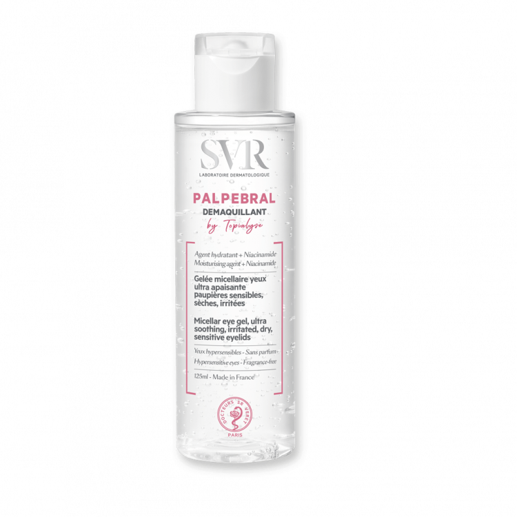 PALPEBRAL by TOPIALYSE DEMAQUILLANT YEAUX é um gel micelar ultrassuave para as pálpebras sensíveis, secas e fragilizadas. Adequado para quem usa lentes de contacto.