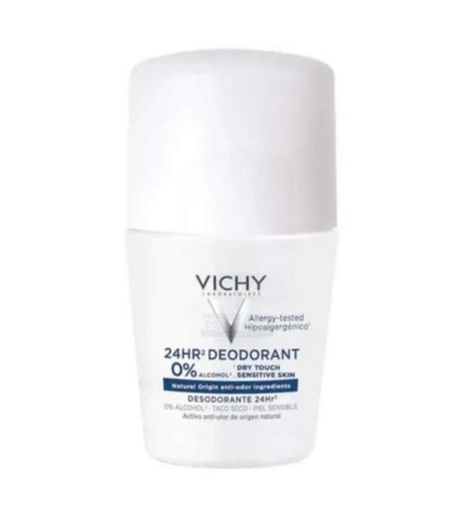 Vichy Desodorizante 24H Toque Seco Roll-On 50ml O Vichy Desodorizante 24H Toque Seco Roll-On é a solução ideal para quem tem peles sensíveis ou transpiração moderada e deseja proteção eficaz contra odores e humidade. Com uma fórmula leve e de rápida secagem, este desodorizante garante um toque seco e uma sensação de frescura que dura